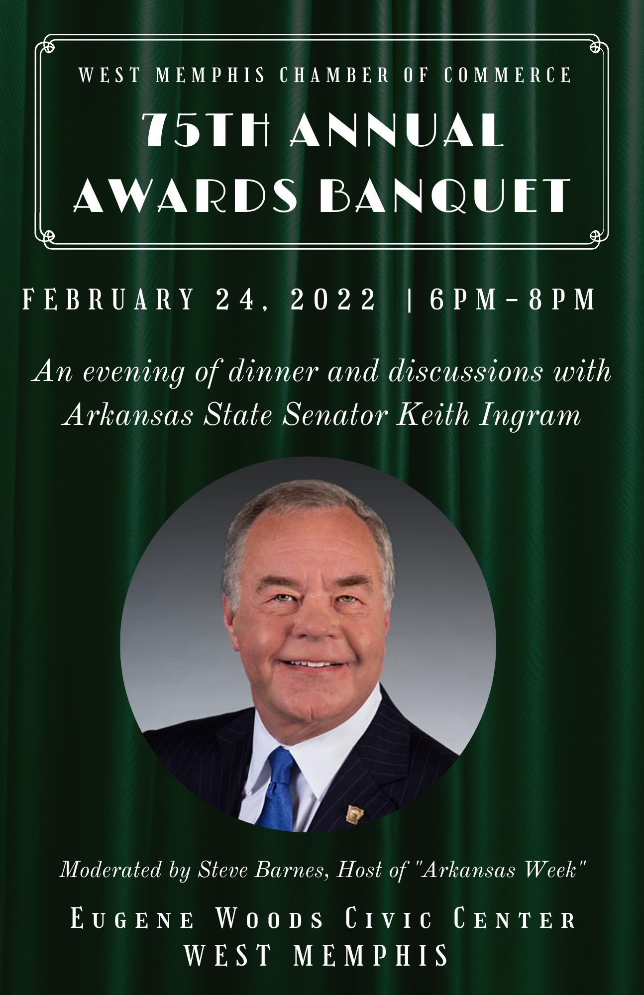 Join us on February 24th as we celebrate the businesses and individuals who have gone above and beyond in 2021. Special guests include Senator Keith Ingram and Host of Arkansas Week, Steve Barnes. Awards include Leadership Class graduates, small business, large business and citizen of the year. Tickets are $65 and tables start at $520. Call the Chamber today or order your tickets on the chamber calendar page.